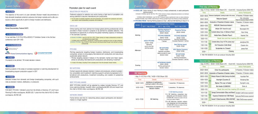The objective of this event is to plan domestic (Korean-made) documentaries to help domestic broadcast contents to advance into foreign markets and to offer producers a direct opportunity to pitch to